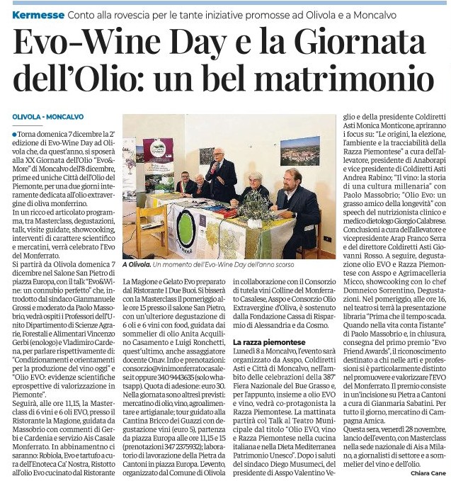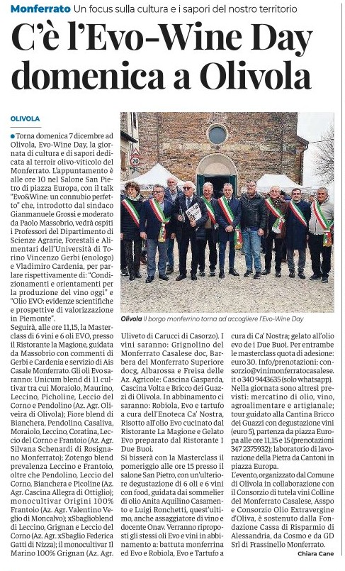 Evo-Wine Day e la Giornata sell’ olio Domenica 7 dicembre 2° edizione