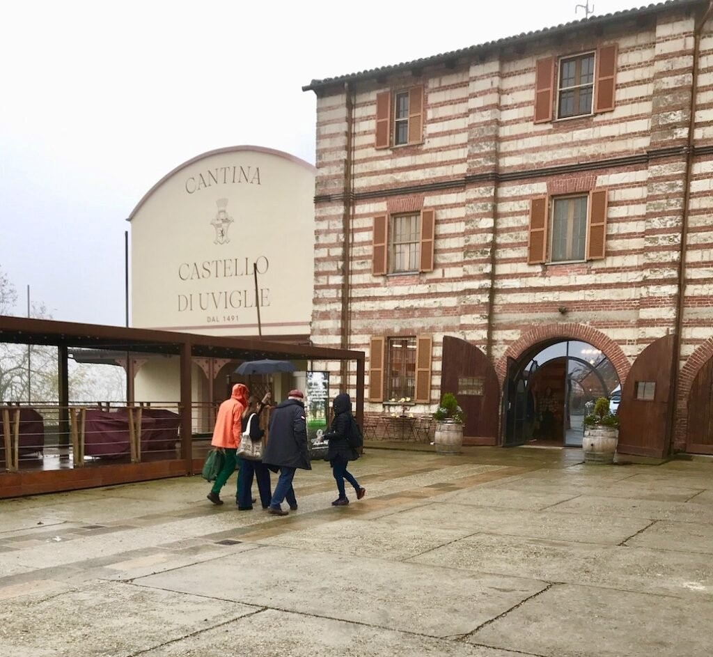 A concludere al meglio la serata, la cena al ristorante Tre Orologi, accogliente e raccolto locale attiguo al castello, dove sono state servite specialità monferrine sposate ai pregiati vini del Castello di Gabiano. Commiato e rientro per il pernottamento, all’agriturismo Ca’ dell’Ebbro di Vignale Monferrato. Domenica, l’ultimo giorno del week end, altri graditi motivi d’interesse. In mattinata, trasferimento a Rosignano Monferrato per visitare la storica cantina del Castello di Uviglie, dove storicità e innovazione si incontrano. Eretta nel lontano 1491, un anno prima che Cristoforo Colombo scoprisse l’America, recentemente dispone di attrezzature enologiche d’avanguardia e professionale sala di degustazione. Oltre la gamma completa dei vini monferrini, la cantina Castello di Uviglie produce il buon spumante metodo classico La Cave. C’è di più. Sotto i vicini vigneti ci sono le Cave di pietra da cantone tutelate dall’Unesco, con cui alcuni secoli fa, si costruivano case e chiese. Spesso gli infernotti sono ricavati dalla stessa pietra. Una certa similitudine con le crayeres della Champagne, che oltre ad affinarci il vino, sono un teatro ideale per varie mostre d’arte e, per l’acustica, di future opere liriche e teatrali.