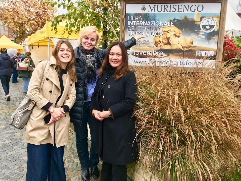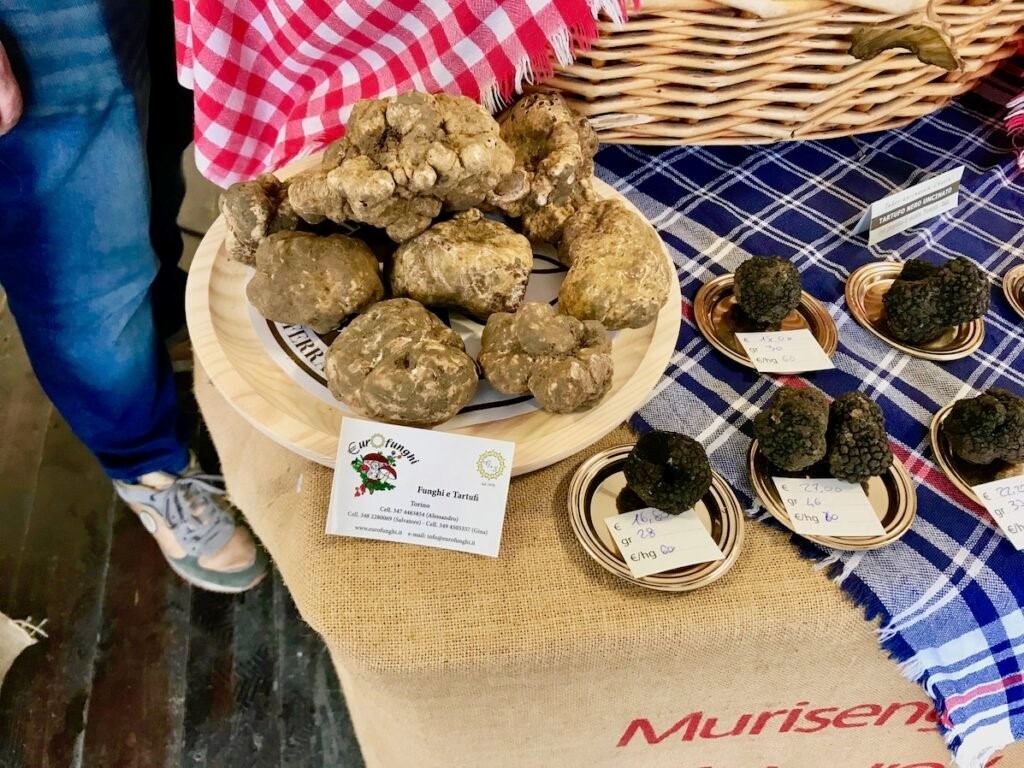 Prossima tappa il suggestivo borgo di Murisengo Monferrato per la Fiera Internazionale del Tartufo Bianco Trifola d’Or, atteso appuntamento da gourmet e ristoranti, giunto alla 58a edizione. Non a caso questa fiera, è seconda solo a quella di Alba. Scesi dall’auto e percorrendo a piedi per almeno10 minuti l’affollata salita che porta al Castello, guidati dalla scia aromatica, raggiungiamo piazza della Vittoria, colma di banchi che espongono tartufi bianchi e neri di varie pezzature e per tutte le tasche. Massima attenzione per chi vende e chi compra: I venditori (trifulai- e commercianti) possono utilizzare il bollino identificativo della Denominazione Comunale (De.Co.) sul proprio prodotto. Da ribadire che tutti i tartufi in vendita sono sottoposti alla rigorosa verifica di idoneità da parte dei membri del Centro Nazionale Studi del Tartufo di Alba.